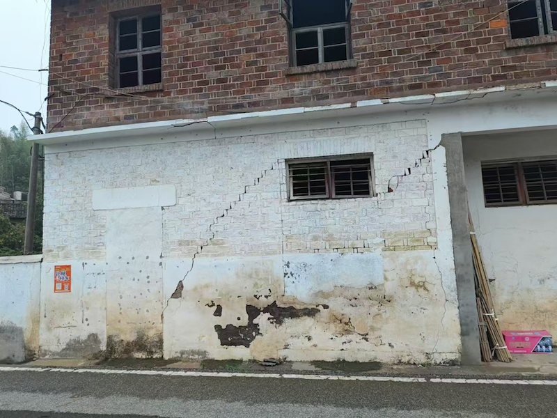 天基觀測(cè)結(jié)果與實(shí)勘完全對(duì)應(yīng),錳礦開(kāi)采區(qū)域所處房屋發(fā)生大面積開(kāi)裂,當(dāng)?shù)卮迕穹从常悍课莸牧芽p開(kāi)展時(shí)間主要發(fā)生在十多年前,近幾年裂縫已幾乎不再發(fā)展